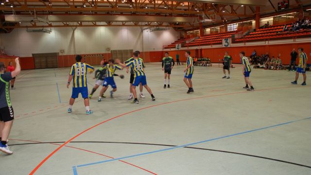 Die ersten zwanzig Minuten brannten die Gäste aus Vorarlberg ein wahres Feuerwerk ab. Jeder Angreifer war torgefährlich, machte Druck gegen gleich zwei Gegenspieler, vollendete selber, wenn er zu spät angegriffen wurde oder spielte geschickt über Außen oder den Kreis. Geislingen fehlte im Angriff die Zielstrebigkeit und die letzte Konsequenz zum Durchbruch. Das Ergebnis war ein 6:9 Rückstand, den die Gäste nach zwanzig Minuten sogar auf 7:12 ausbauen konnten. Eine Zeitstrafe gegen Linus Amann aus Bregenz brachte zwar keine Resultatsverbesserung, wurde aber zum Wachsignal für die TG. Claudius Schurr führte mit viel Tempo geschickt Regie und schuf entscheidende Freiräume, die Magnus Boni, Giacomo Mastro und Pascal Kutek zu sehenswerten Treffern nutzten. Fünf Minuten später war das Spiel beim 11:13 wieder völlig offen und bis zur Pause gelang Geislingen sogar der 13:14 Anschlusstreffer.