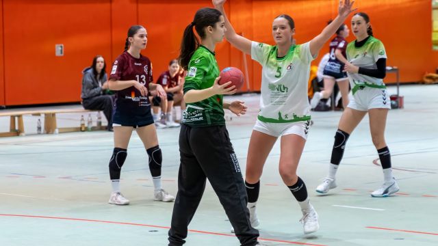 Die TG hatte sich durch drei Nachwuchsspielerinnen der C-Jugend verstärkt, da Leni Aigner, Anna Geyer und Lara Renz wegen Krankheit und privaten Gründen passen mussten. Darüber hinaus gelangen den länger verletzten Zoe Kobrehel und Svenja Schrenk ein gutes Comeback. Geislingen begann hoch konzentriert und lag nach acht Minuten bereits mit 7:3 in Führung. Schnelles Passspiel mit entschlossenen Durchbrüchen nutzten Sophia Biegert und Maxi Seybold in Folge zu einfachen Toren. Danach brachten die weit angereisten Gäste aus Südbaden mehr Schwung in ihre Angriffe und verkürzten auf 11:8 in der 21. Minute. Eine Auszeit der Gastgeberinnen verbesserte die Präsenz und Aufmerksamkeit in der Defensive und bis zur Pause erhöhte die TG auf 16:10.