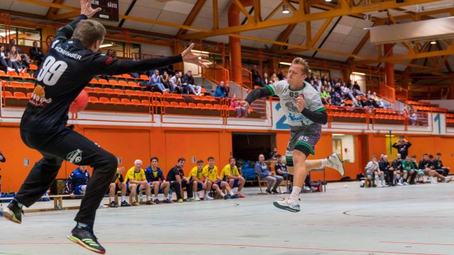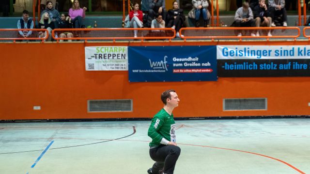 Eine Glanzleistung gegen den Tabellenvorletzten war es tatsächlich nicht. Am Anfang schien es aus Geislinger Sicht gut zu laufen. Über die Außenspieler Moser und Sprinzl wurden die Torabschlüsse gesucht, welche diese solide nutzten. Lauterstein sah sich gezwungen, eine Auszeit zu nehmen, um den Anschluss nicht zu verlieren (12./4:8). Die darauffolgenden zwei Strafwürfe konnte Frey noch spektakulär entschärfen, doch das war dann wohl die letzte gute Aktion der Geislinger. Sie verloren den roten Faden und gaben die Führung zu schnell her (26./12:11). Die Hausherren dominierten jetzt das Spiel und traten gestärkt die Halbzeitpause an (14:13).