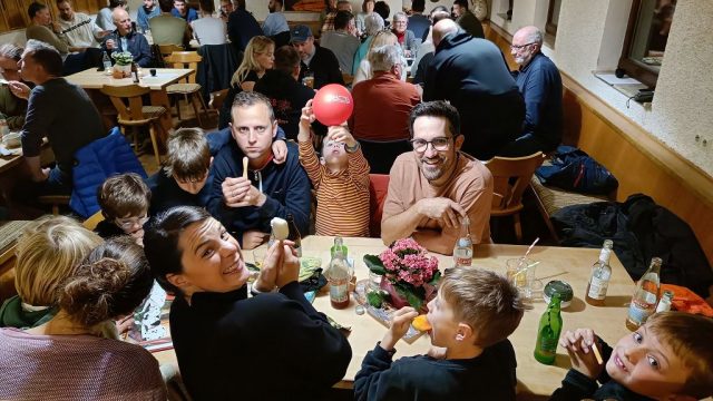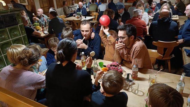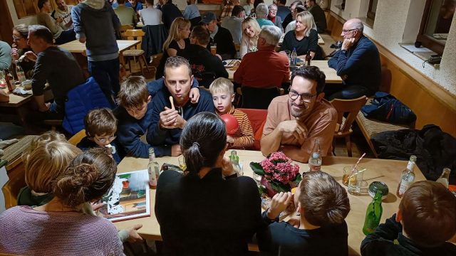 Als Dankeschön an alle Leute, die ihren Teil dazu beigetragen haben, dass das Geiselsteinhaus lebt, veranstaltet die TG traditionell das Hüttendienstessen Anfang November. Über 70 Erwachsene und Kinder haben gemeinsam gespeist, gefeiert und einen gemütlichen Hüttenabend verbracht. Wie die letzten Jahre gab es Linsen und Spätzla; so lecker, dass so mancher auf die zweite Portion verzichten musste. Für die ganz Hungrigen+Süßen gab es zum Glück noch Eis am Stiel.