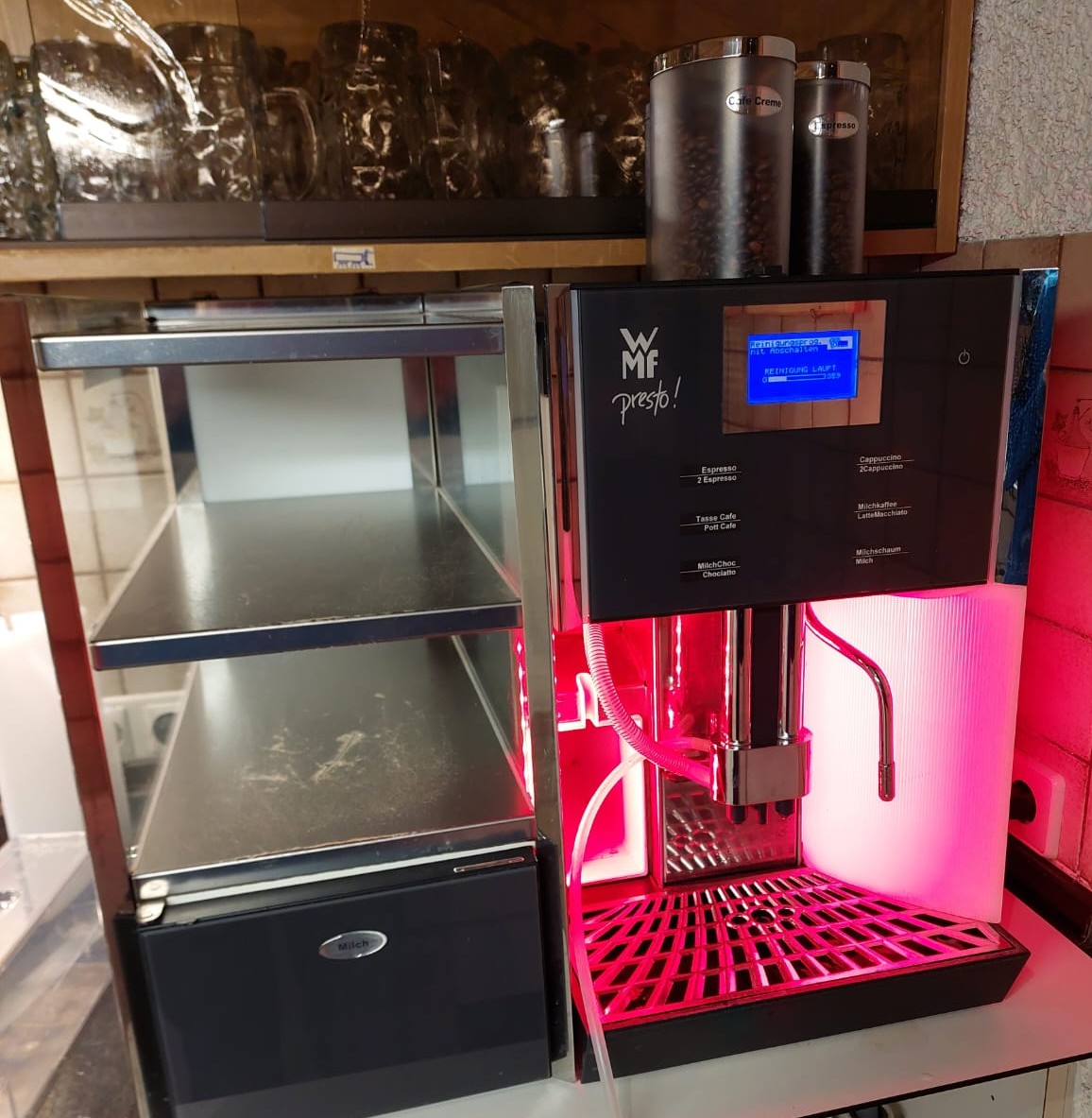 Auch unsere treue Kaffeemaschine blinkt und mahlt wieder mit Freude.