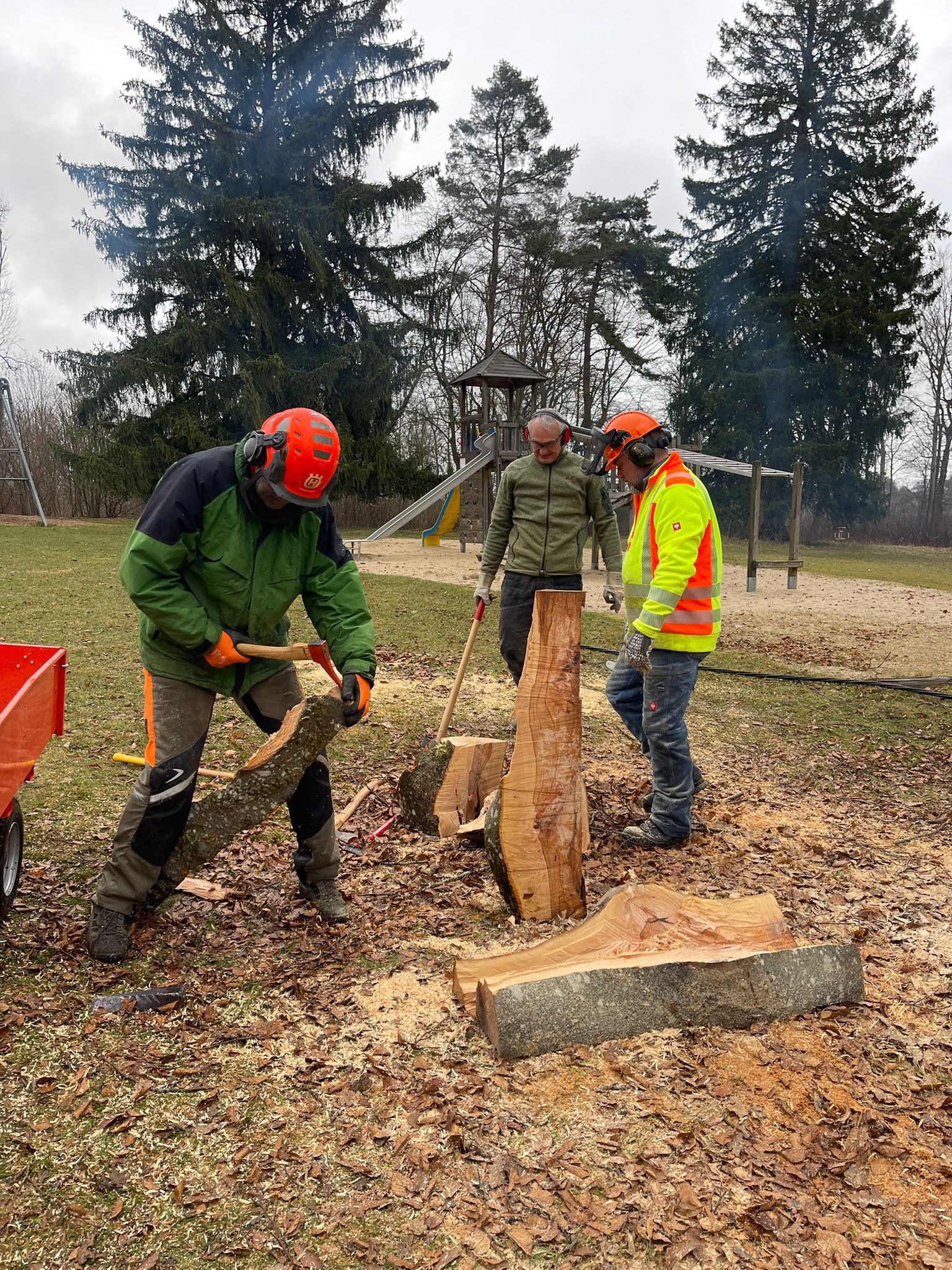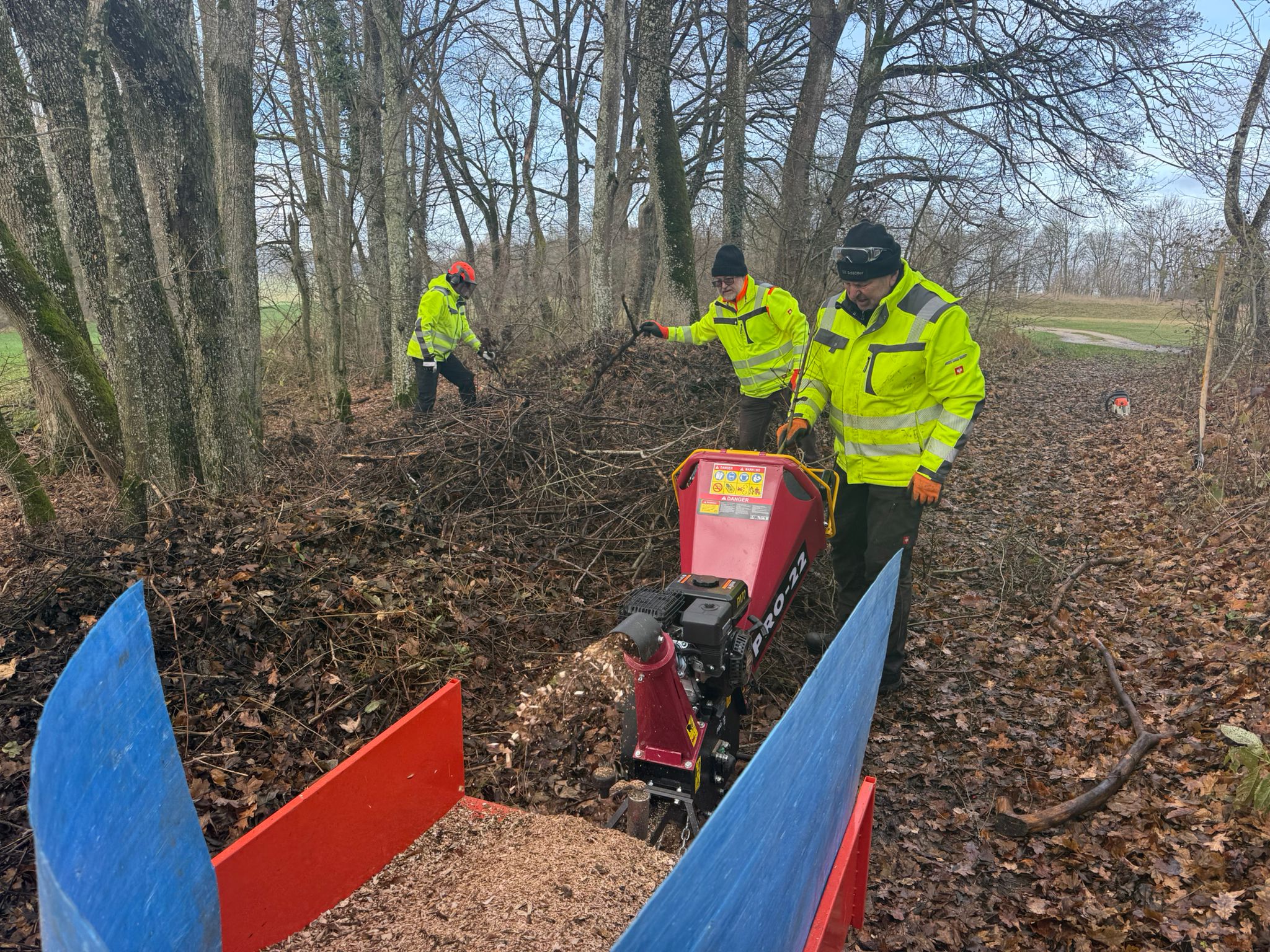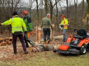 Und nicht nur das! Rund um das Haus mussten einige Bäume wegen akuter Gefahr gefällt werden. Dazu bedurfte es mehrerer Großaktionen in den letzten Wochen. Außerdem wurde das gesamte Gelände von wildem Müll erlöst, die wuchernden Hecken wurden geschnitten sowie die Wege und Terrasse von Laub und Ästen gesäubert.