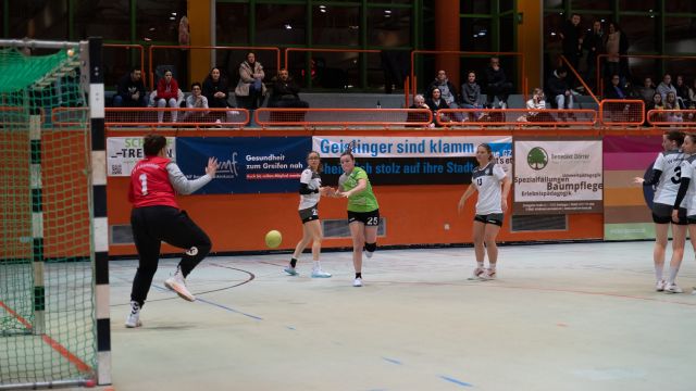 Einen verdienten 25:18 Heimsieg landeten die Damen der TG Geislingen im Stadtderby gegen den TV Altenstadt. Entscheidend waren die ersten fünfzehn Minuten in der zweiten Hälfte, als die TG von 9:8 auf 20:12 davonzog. Damit tauschten beide Mannschaften ihre Tabellenplätze, die TG steht nunmehr auf Platz 7, zwei Pluspunkte Vorsprung auf den Vorletzten TVA. Mit dem acht-Tore-Vorsprung hat Geislingen damit auch im direkten Duell beider Mannschaften die ‚Nase vorne‘.