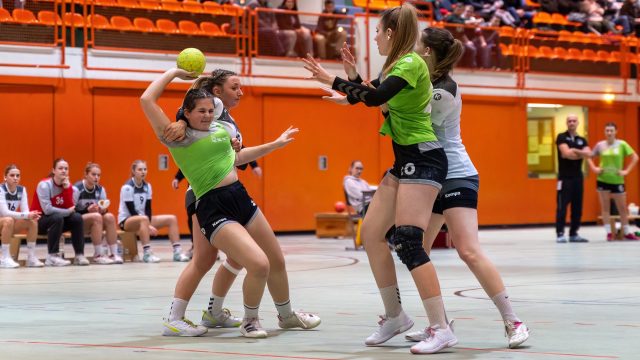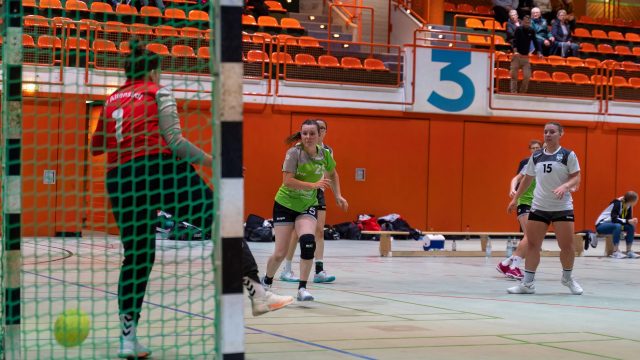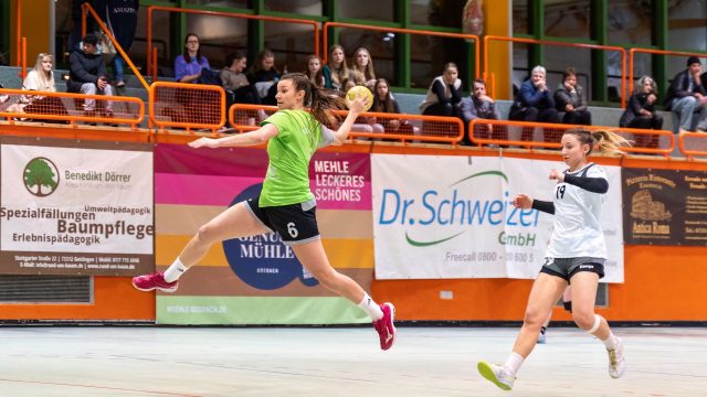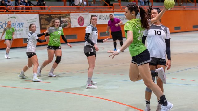 Beide Mannschaften brauchten lange um so richtig ins Spiel zu finden, denn erst nach fünf Minuten fiel der erste Treffer durch Shirin Kröner zum 0:1. Geislingen hatte große Mühe gegen die kompakte Abwehr zum Erfolg zu kommen und bei den Gästen war es Shana Stäudle, die mit ihren Distanzschüssen das richtige Mittel zum Erfolg wählte. Beim 3:6 reagierte Trainer Martin Knödler mit einer Auszeit. Seine Aufforderung, im Angriff Pass- und Laufgeschwindigkeit zu erhöhen, hatte Erfolg. Daniela Ocker, Esin Acar und Pia Schreitmüller drehten das Spiel mit ihren Treffern zum 8:6 Vorsprung. Eine tolle Unterstützung waren in dieser Phase zusätzlich einige tolle Torhüterinnenparaden von Laura Betz. Mit 9:8 ging es dann in die Kabinen.