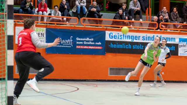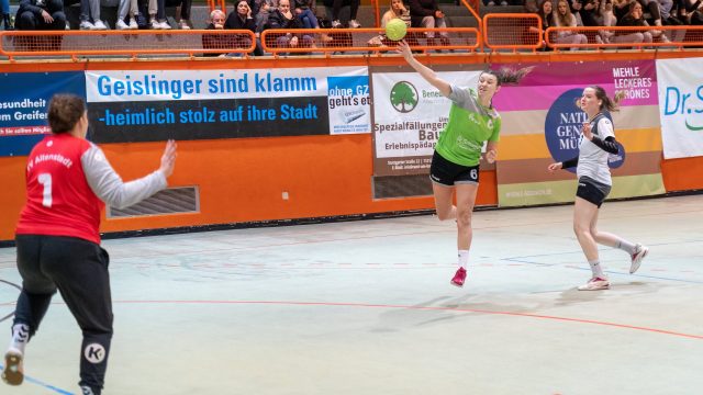 Einen verdienten 25:18 Heimsieg landeten die Damen der TG Geislingen im Stadtderby gegen den TV Altenstadt. Entscheidend waren die ersten fünfzehn Minuten in der zweiten Hälfte, als die TG von 9:8 auf 20:12 davonzog. Damit tauschten beide Mannschaften ihre Tabellenplätze, die TG steht nunmehr auf Platz 7, zwei Pluspunkte Vorsprung auf den Vorletzten TVA. Mit dem acht-Tore-Vorsprung hat Geislingen damit auch im direkten Duell beider Mannschaften die ‚Nase vorne‘.