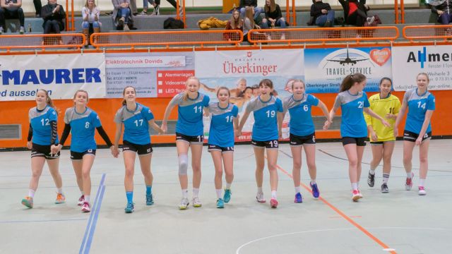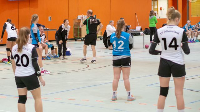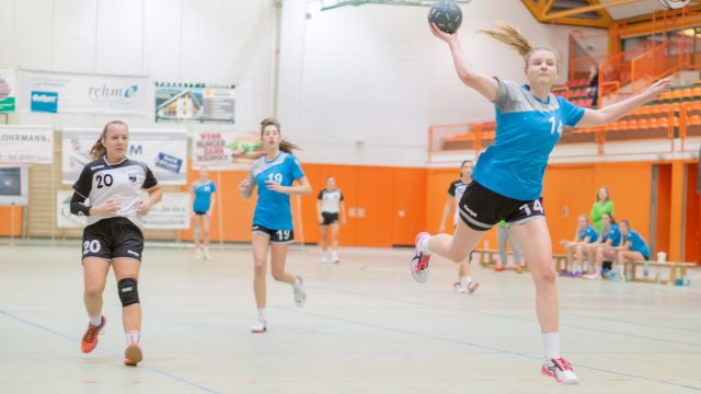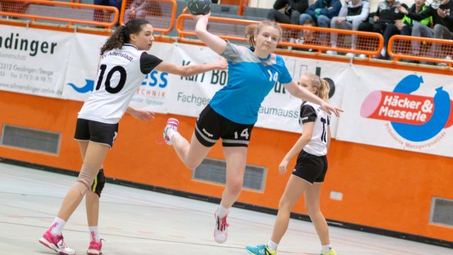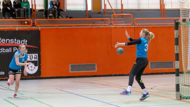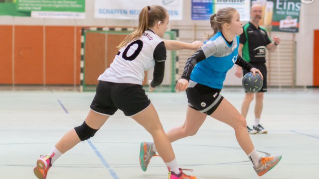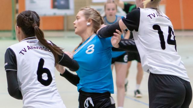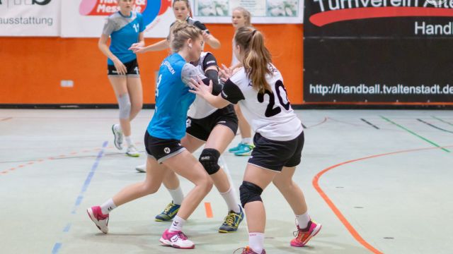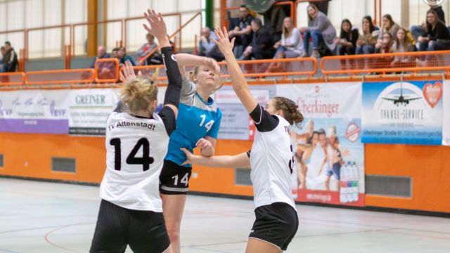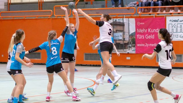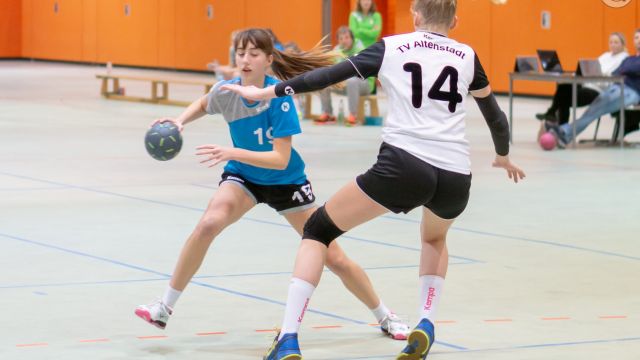 Eine beeindruckende Vorstellung zeigte die B-weiblich beim zweiten Derbysieg gegen den TV Altenstadt. Altenstadt konnte das Spiel nur bis zum 4:4 in der zehnten Minute ausgeglichen gestalten. Trotz der defensiven sehr kompakten Abwehr gelangen Mirja Simon und Kaja Ehrhardt in der ersten Halbzeit immer wieder einfache Ballgewinne, indem sie die Querpässe geschickt erahnten. Hinzu kamen vier vergebene Strafwürfe des TVA, die den deutlichen 4:10 Vorsprung nach achtzehn Minuten begünstigten. Lara Gebhart gelang dann vor dem Pausenpfiff noch der 9:15 Anschlusstreffer.