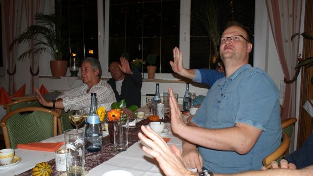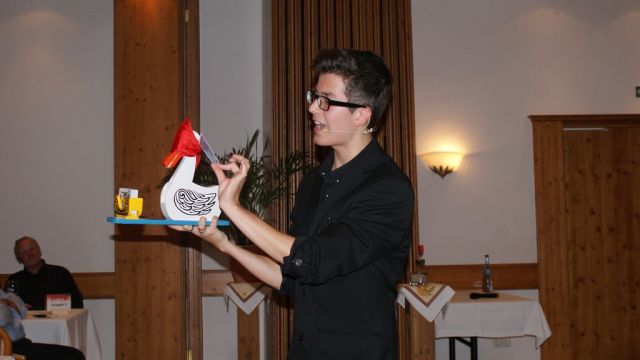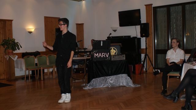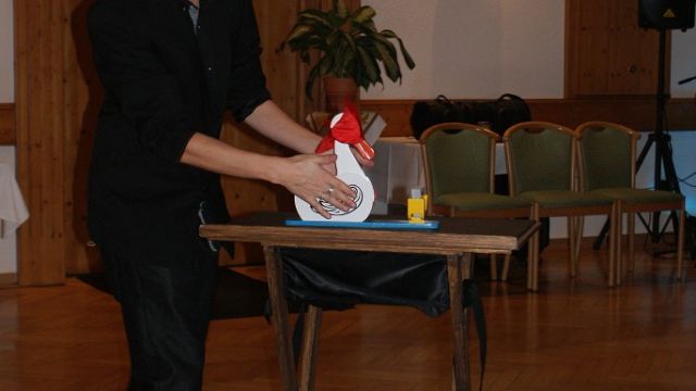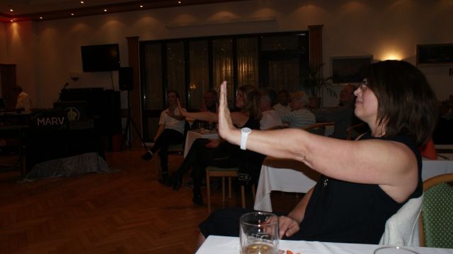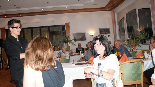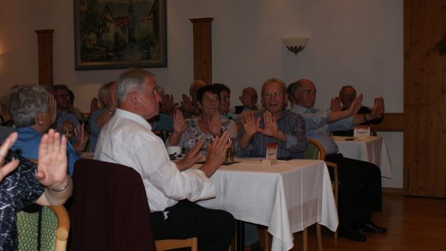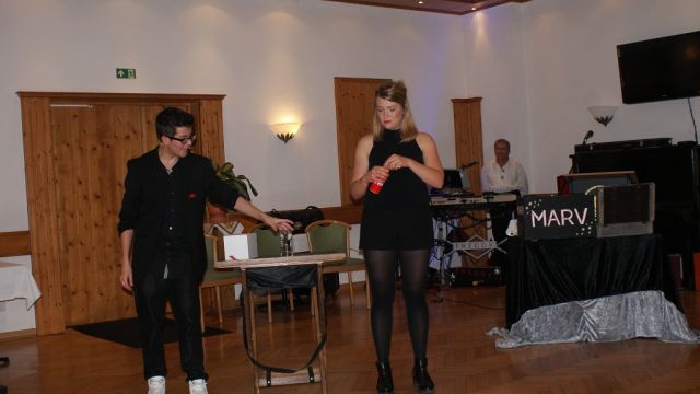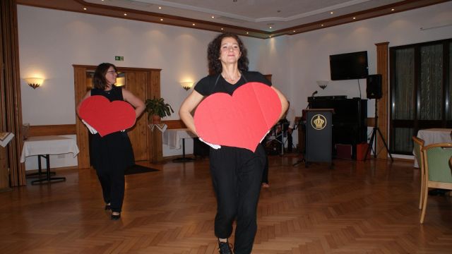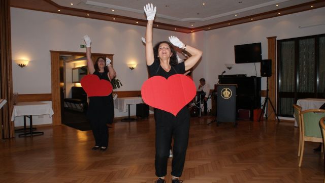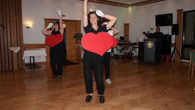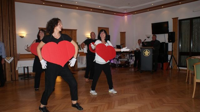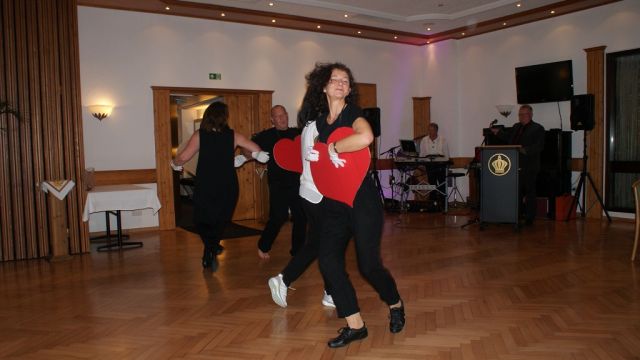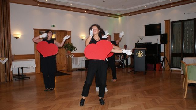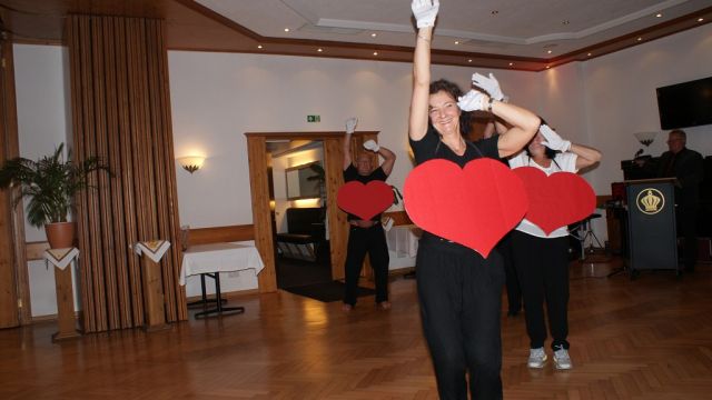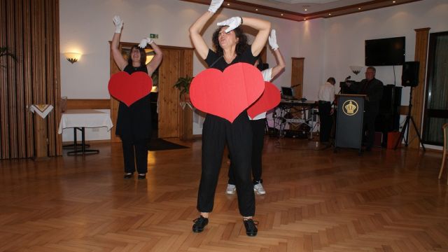 Im Anschluss war für beste Unterhaltung gesorgt. Wiebke Dobbehaus und Immanuel Grau von der New Stage Company gaben bekannte Songs, unter anderem aus dem Film Moulin Rouge oder dem Musical Tanz der Vampire zum Besten. Marv der Zauberer begeisterte sein Publikum mit verblüffenden Tricks, danach brachten Ursula Mayer und Evelyn Knoblauch, beide Herzsport-Teilnehmerinnen, die Zuschauer mit einem humorvollen Sketch zum Lachen. Die Übungsleiter führten ein flottes „Herz“-Ballett auf und Gruppensprecher Ulrich Ludwig, der federführend den Abend organisiert hatte, nahm den Herzsport in einem Gedicht humorvoll aufs Korn. Dann war Gelegenheit, zu den Melodien von Alleinunterhalter Freddy das Tanzbein zu schwingen. Ein gelungener Abend, den alle sicherlich noch lange in Erinnerung behalten werden.