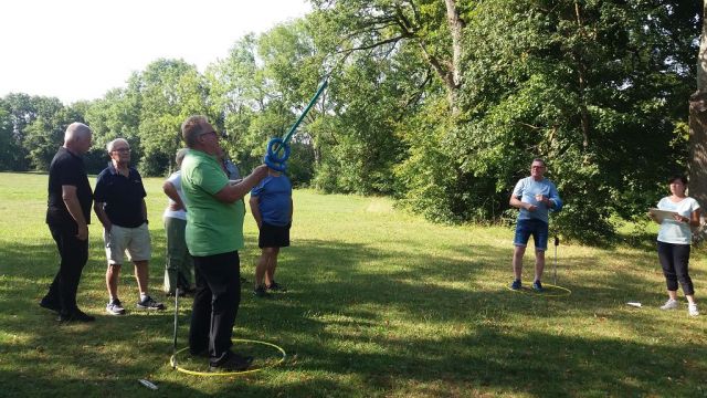 Auf dem Programm standen die schon zur Tradition gewordenen Paar-Spiele. Übungsleiter Gerd Angele und sein Team hatten wieder einen interessanten Spielparcours aufgebaut, wo so manches Mal Geschicklichkeit gefragt war. Jedoch stand der Spaß dabei an erster Stelle und das Motto hieß deshalb „dabei sein ist alles“.
