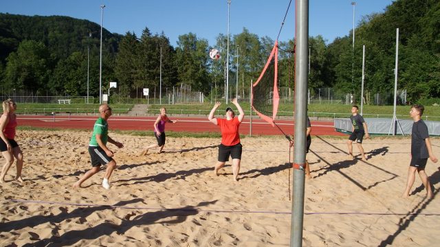 Am Freitag, den 28. Juni 2019 fand das traditionelle TG-interne Beachvolleyballturnier in der 13. Auflage unter der Leitung von Stephan Schweizer statt. Bei herrlichem Sommerabendwetter begann das Turnier mit acht Teams mit den Vorrundenspielen in zwei Vierergruppen. Gespielt wurde jeweils auf Zeit, Herren im Rentenalter, Kinder und Damen bekamen wie üblich jeweils einen Bonuspunkt. Nebenher war wieder das Grillen angesagt, so dass sich ein sehr geselliges Beisammensein mit vielen Fachgesprächen entwickelte.