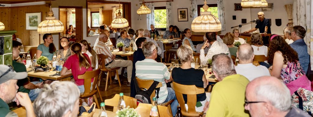 des Tages mit einem Stehempfang auf der Terrasse begann und nahtlos in den offiziellen Jubiläumsabend im beliebten Geiselsteinhaus überging.