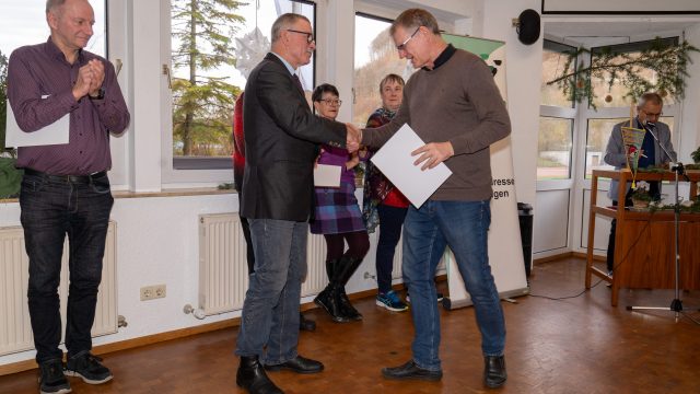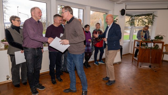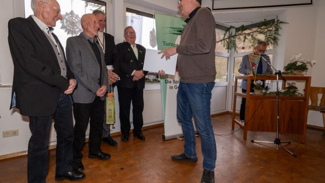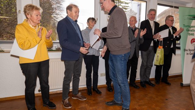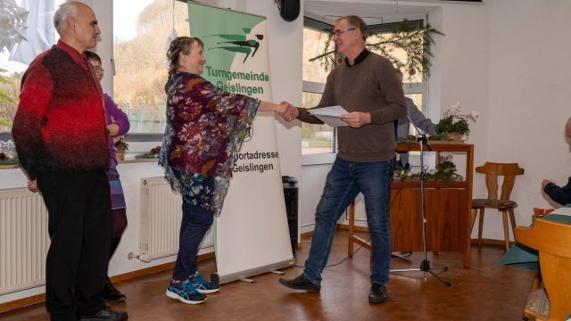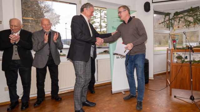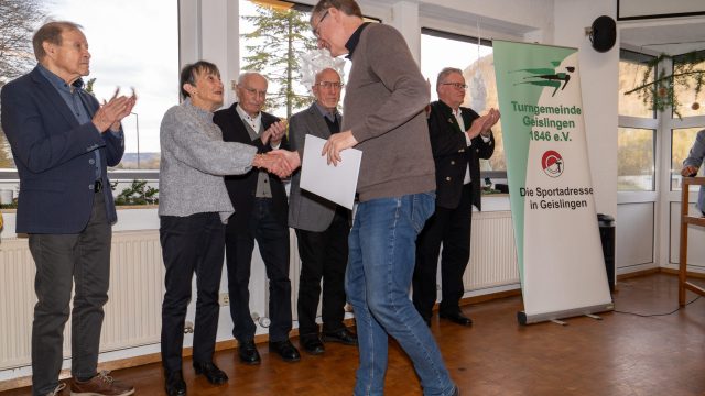 Ehrenvorsitzender Holger Scheible vollzog dann die Ehrungszeremonie und hatte für jeden Jubilar die passenden Worte. So erfuhren die Anwesenden allerlei Interessantes zum sportlichen und ehrenamtlichen Lebenslauf der langjährigen Mitglieder. Anschließend erfolgten die Sonderehrungen aufgrund besonderen Engagements für die TG Geislingen.