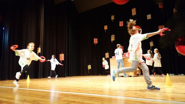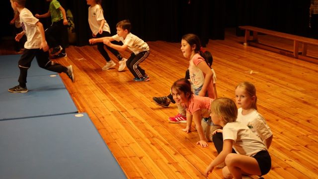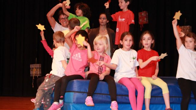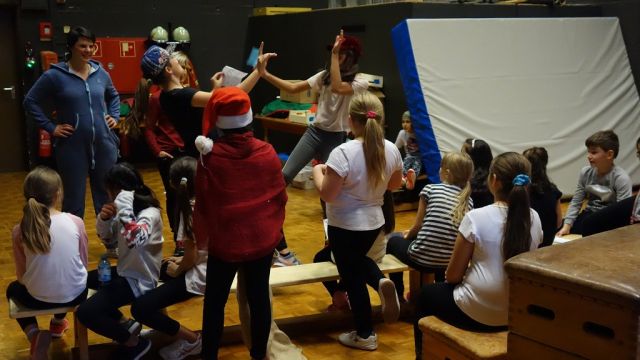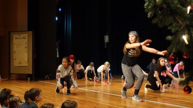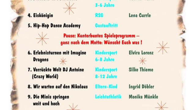 Mit dem bunten Programm haben die TG-Kinder dem Nikolaus gezeigt, wie fit sie sind und dass Sport Spaß macht! Bevor es die lang ersehnten Geschenke gab, studierten die acht- bis zwölfjährigen Kinder von Silke Thieme einen finalen Flashmob ein, bei dem nicht nur auf der Bühne, sondern auch im Saal eifrig mitgemacht wurde. So ging mit Schwung eine kurzweilige Nikolausfeier zu Ende.