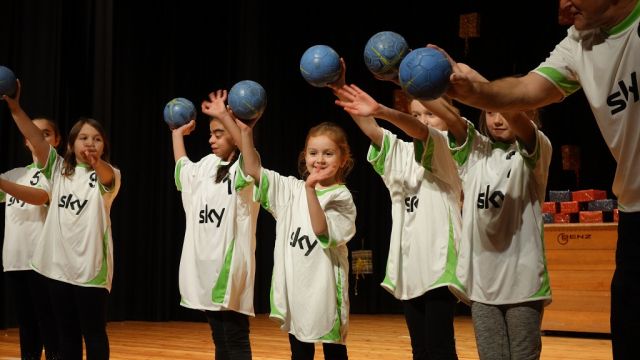 Zunächst ließen die Minihandballer von Kurt Häußler mit einer schwungvollen Vorführung die Wunschpakete auf der Bühne fliegen und legten zum Handball-Hit „Wenn nicht jetzt wann dann?“ einen tollen Auftritt hin.