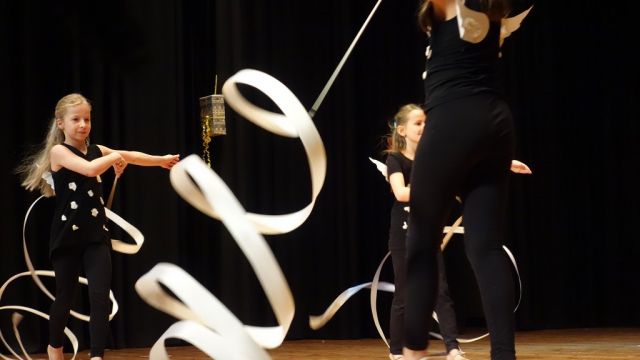 Danach ging es mit den sieben- bis zehnjährigen Mädchen der Wettkampfgymnastik musikalisch und tänzerisch rund. Aurisa Morina hatte eine Gymnastikeinlage mit Band und Keulen einstudiert. Unter dem Motto „Nikolaus und Nikoletta“ zeigten die drei- bis sechsjährigen Kinder in Nikolauskostümen zusammen mit ihrer Vorturnerin Yasmin Zaher ein Tänzchen. Beide Vorführungen wurden mit viel Beifall bedacht.
