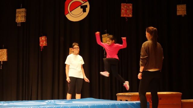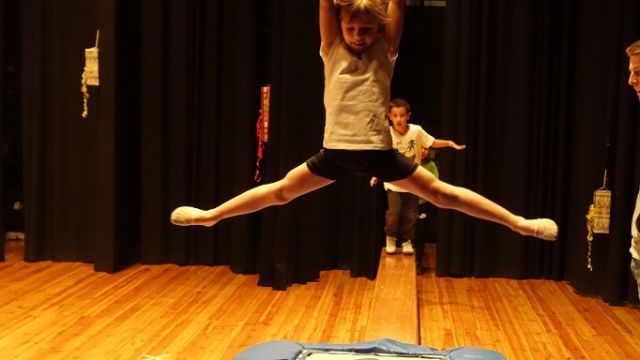 Nach der knapp halbstündigen Pause, in der es im Foyer der Jahnhalle verschiedene Spielmöglichkeiten gab, die von Studenten der Hochschule für Wirtschaft und Umwelt ausgetüftelt und betreut wurden, traten die Sechs- bis Achtjährigen von Elvira Lorenz selbstbewusst auf die Bühne und bewiesen beim Bodenturnen und Trampolinspringen, dass es den Kids an Mut nicht fehlt.