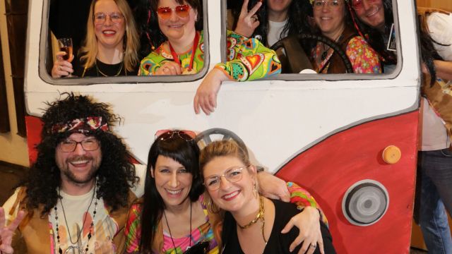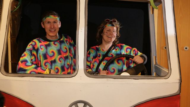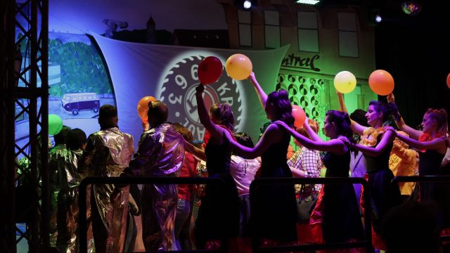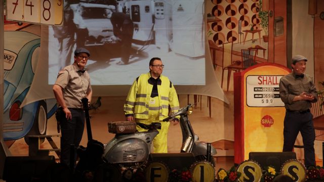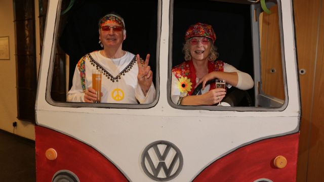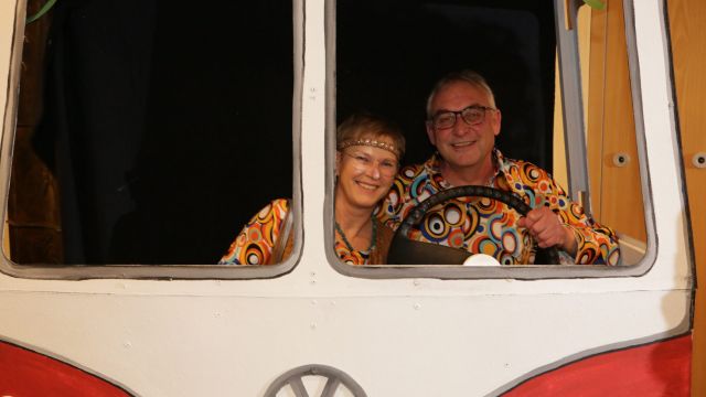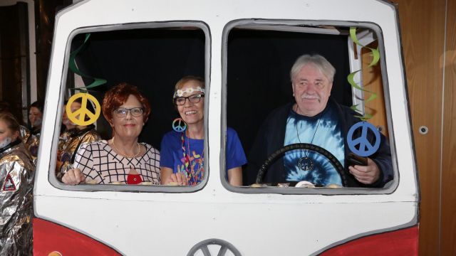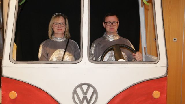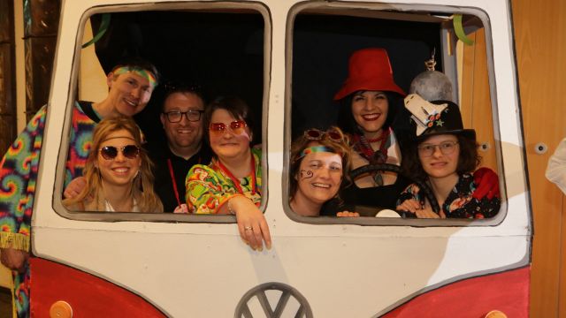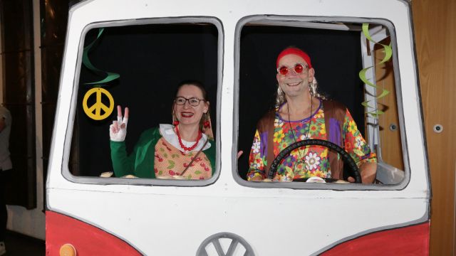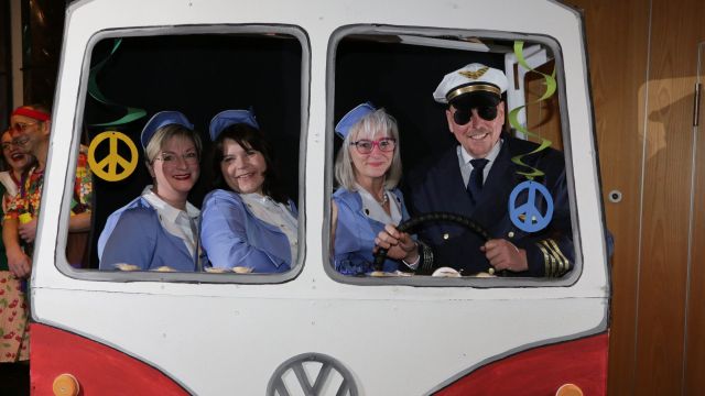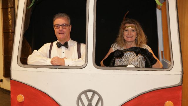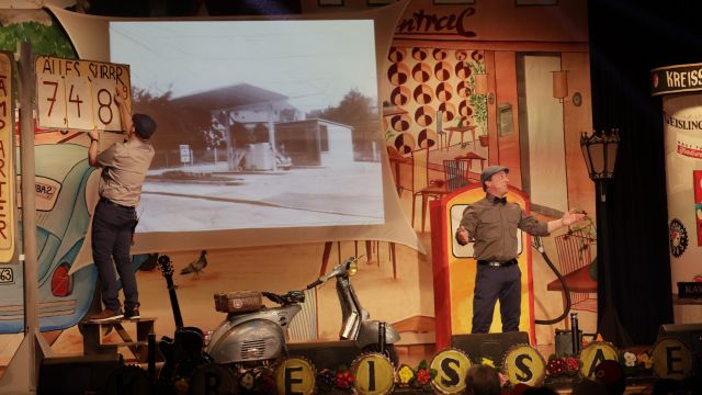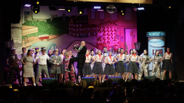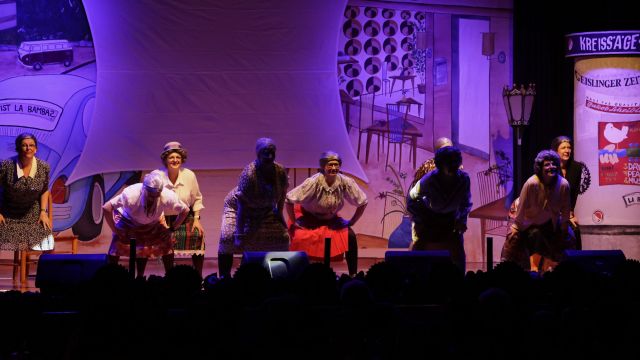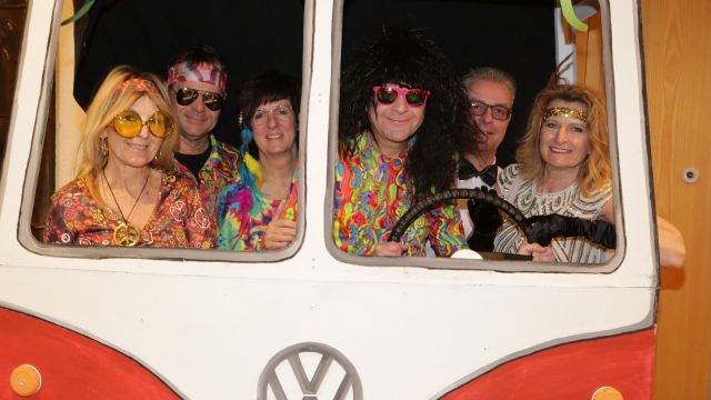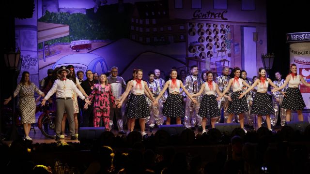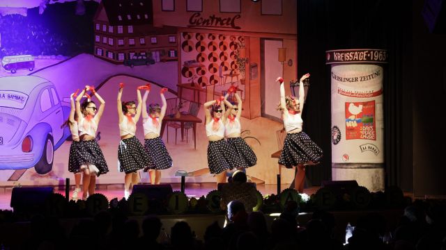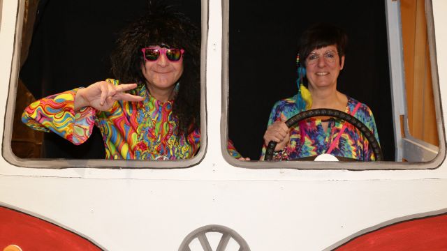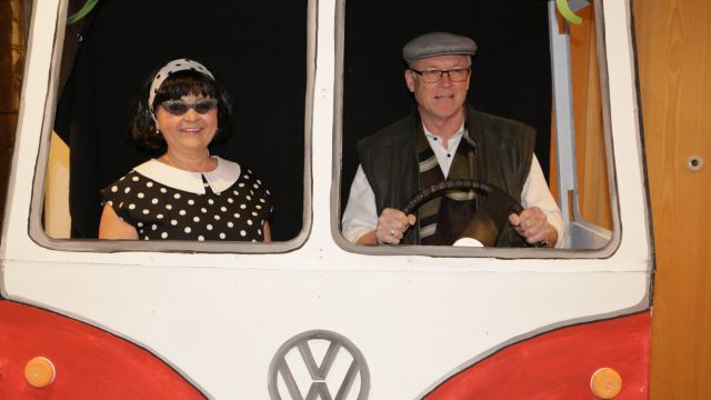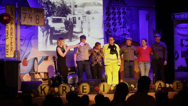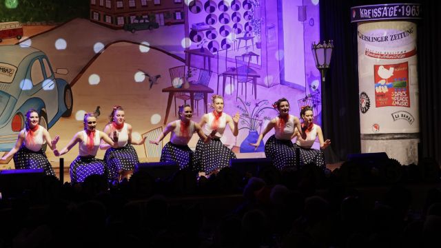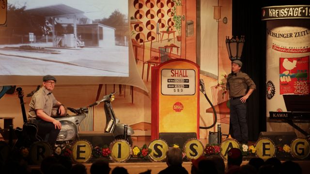Am Wochenende war es endlich wieder soweit! Nach drei langen Jahren verwandelte die Kreissäge die Jahnhalle wieder in ein buntes Tollhaus. Schon seit Wochen war die Jahnhalle an beiden Abenden ausverkauft! Stilecht, mit 60er Jahre Bulli, wurden die Besucher im Foyer begrüßt. Eine Fotowand zeigte einen Rückblick in die Vergangenheit bis zur ersten Stunde der Kreissäge und die stilvoll geschmückte Halle ließ die Vorfreude noch höher steigen. Und schon ging es los: Sascha Binder, als Peter Prause der Hausmeister der Jahnhalle, wurde durch die Mitwirkenden in seinem Tun gestört, als diese die Bühne zu den Klängen von “La Bamba” stürmten. Das Bühnenbild ließ die Zuschauer in die Fuzo der 60er eintauchen und “Bax” Wagner gab den Sägewalzer zum ersten Mal seit drei Jahren wieder zum Besten. “Rio d`Oro” brachte Woodstock auf den Helfenstein und viel Stimmung in die Halle. Eine super Kreissäge-Premiere hatte die Gruppe Fit & Fun – sie erinnerte mit einer tollen Choreo an die Mondlandung – inklusive Aliens, die es sich nicht nehmen ließen mitzutanzen. “Anton aus dem All” legte humoristisch die Gründe dar, warum eine Gruppe Türkheimer in den sechziger Jahren ins All aufbrach, bevor das Männerballett an den ersten Kaffeevollautomaten der WMF erinnerte, und anschließend den Kaffee natürlich auch stilecht servierte. Und als dann “Bax und Spatzl” ihre ehelichen Diskrepanzen mit Gitarre und tollen Stimmen unter vielen Lachern zum Besten gaben, war den Zuschauern zur Pause schon klar: die Kreissäge rotiert wie eh und je!
