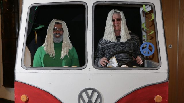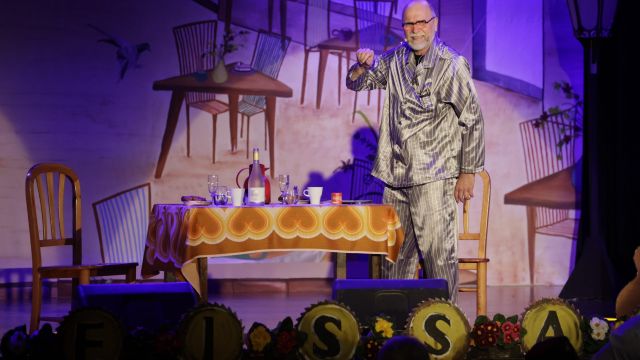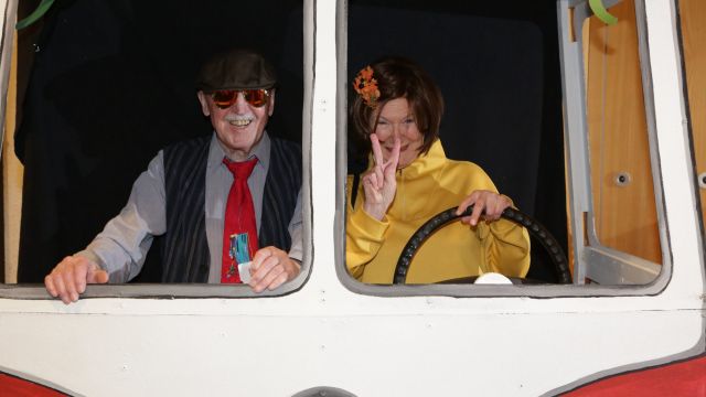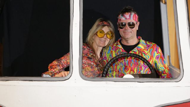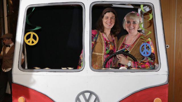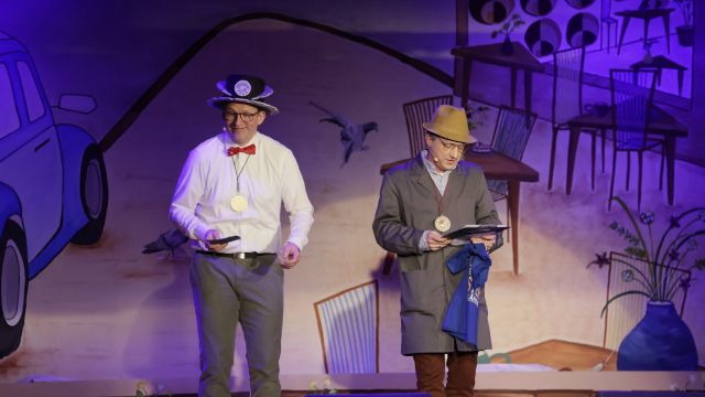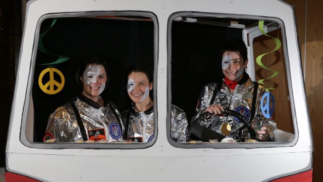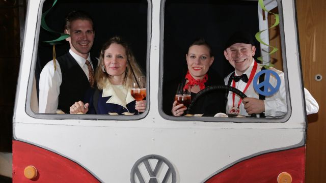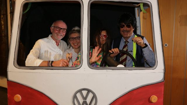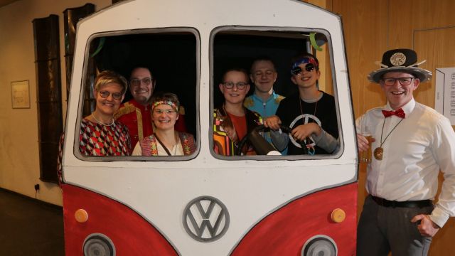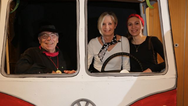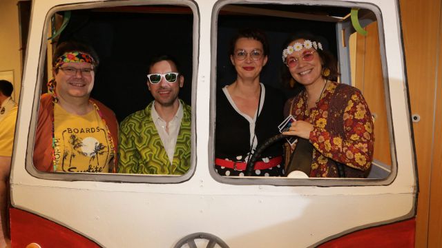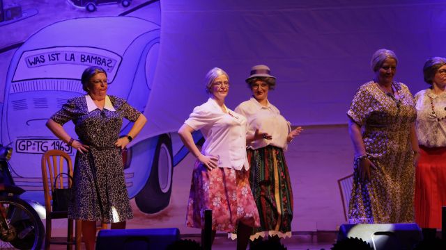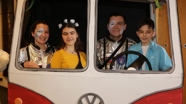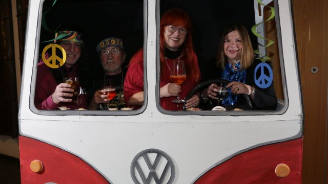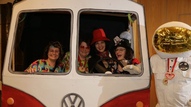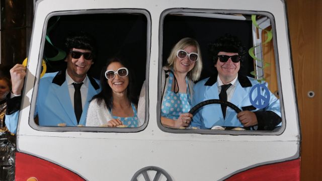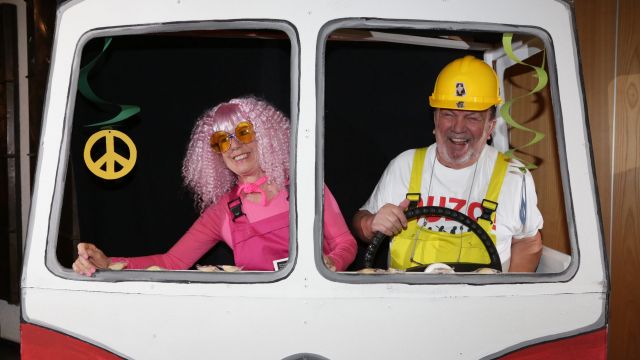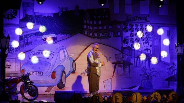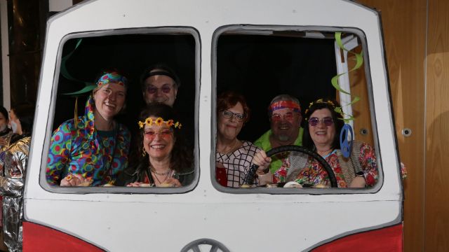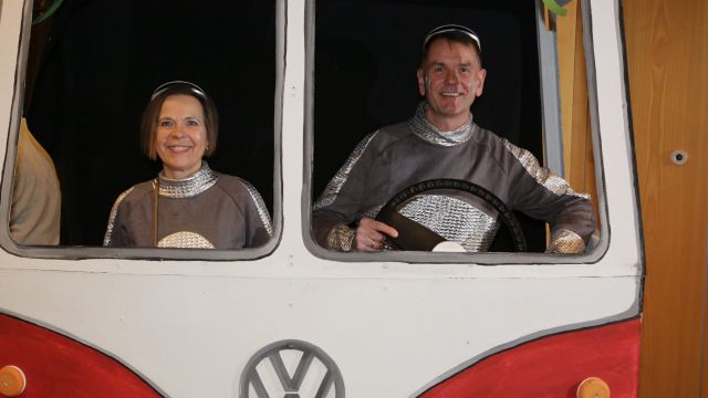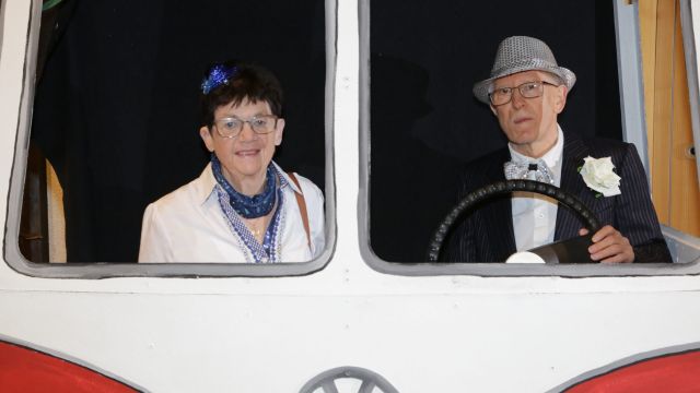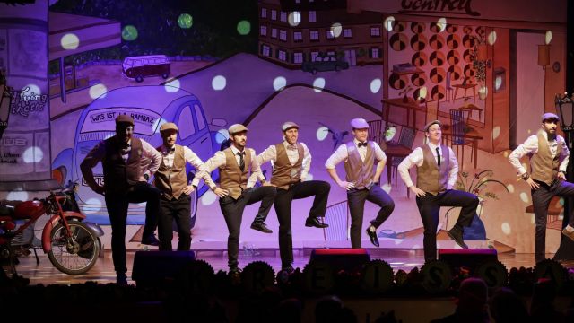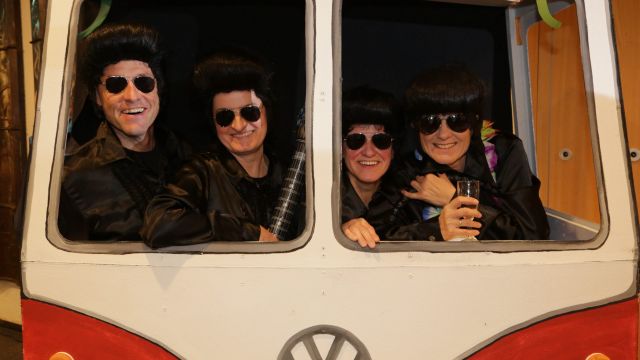 Am Wochenende war es endlich wieder soweit! Nach drei langen Jahren verwandelte die Kreissäge die Jahnhalle wieder in ein buntes Tollhaus. Schon seit Wochen war die Jahnhalle an beiden Abenden ausverkauft! Stilecht, mit 60er Jahre Bulli, wurden die Besucher im Foyer begrüßt. Eine Fotowand zeigte einen Rückblick in die Vergangenheit bis zur ersten Stunde der Kreissäge und die stilvoll geschmückte Halle ließ die Vorfreude noch höher steigen. Und schon ging es los: Sascha Binder, als Peter Prause der Hausmeister der Jahnhalle, wurde durch die Mitwirkenden in seinem Tun gestört, als diese die Bühne zu den Klängen von “La Bamba” stürmten. Das Bühnenbild ließ die Zuschauer in die Fuzo der 60er eintauchen und “Bax” Wagner gab den Sägewalzer zum ersten Mal seit drei Jahren wieder zum Besten. “Rio d`Oro” brachte Woodstock auf den Helfenstein und viel Stimmung in die Halle. Eine super Kreissäge-Premiere hatte die Gruppe Fit & Fun – sie erinnerte mit einer tollen Choreo an die Mondlandung – inklusive Aliens, die es sich nicht nehmen ließen mitzutanzen. “Anton aus dem All” legte humoristisch die Gründe dar, warum eine Gruppe Türkheimer in den sechziger Jahren ins All aufbrach, bevor das Männerballett an den ersten Kaffeevollautomaten der WMF erinnerte, und anschließend den Kaffee natürlich auch stilecht servierte. Und als dann “Bax und Spatzl” ihre ehelichen Diskrepanzen mit Gitarre und tollen Stimmen unter vielen Lachern zum Besten gaben, war den Zuschauern zur Pause schon klar: die Kreissäge rotiert wie eh und je!