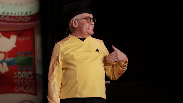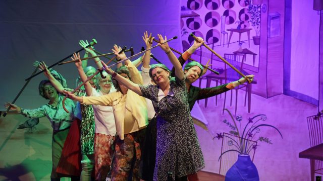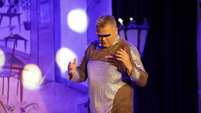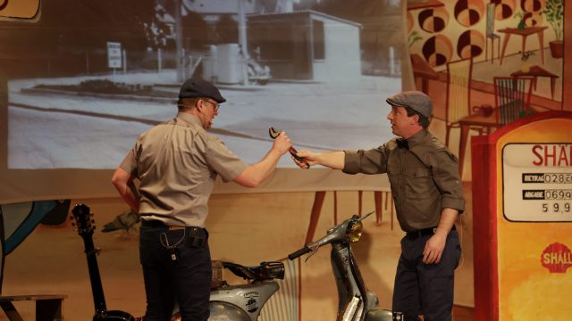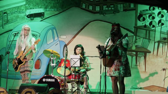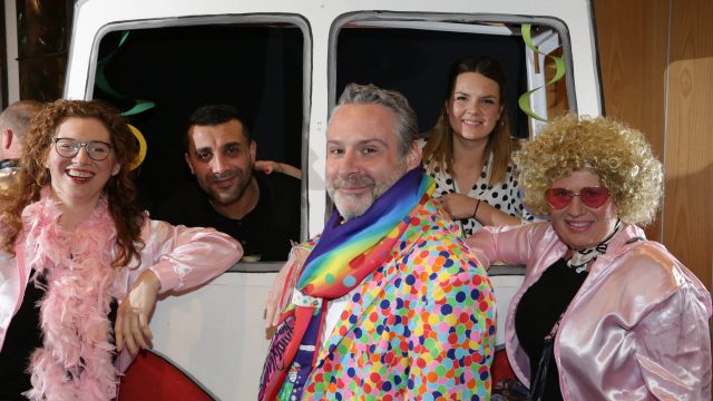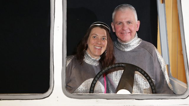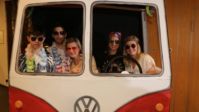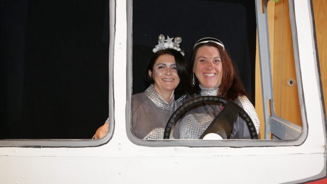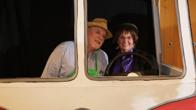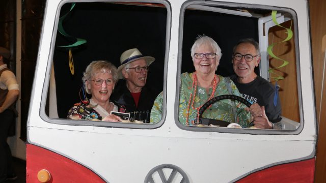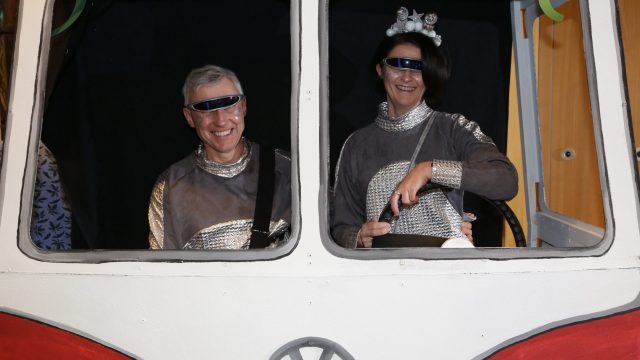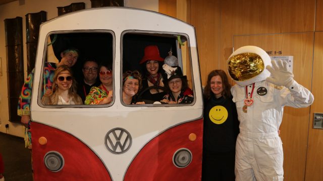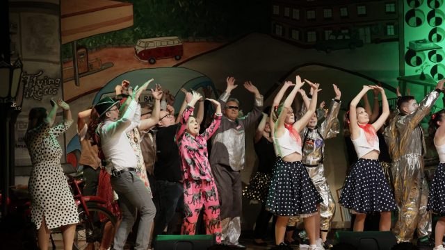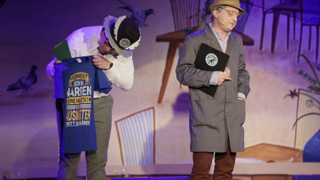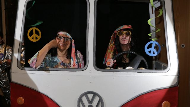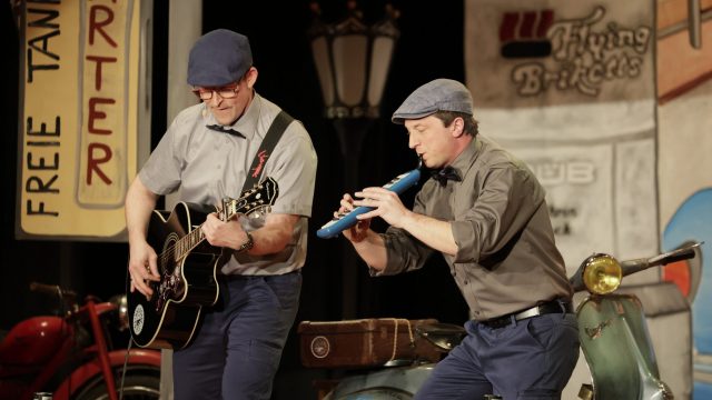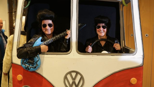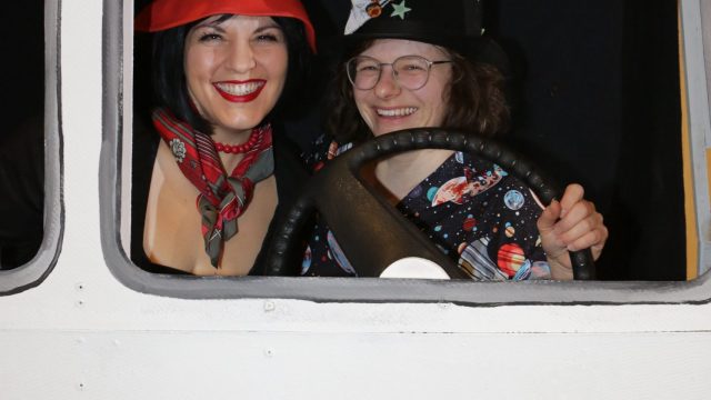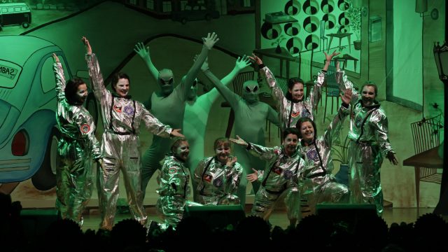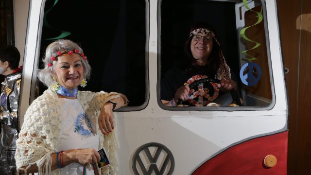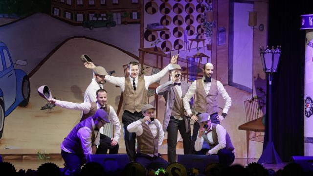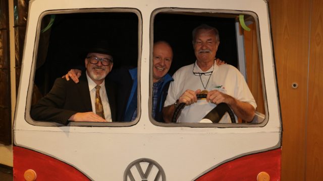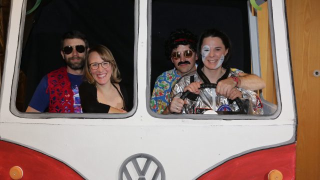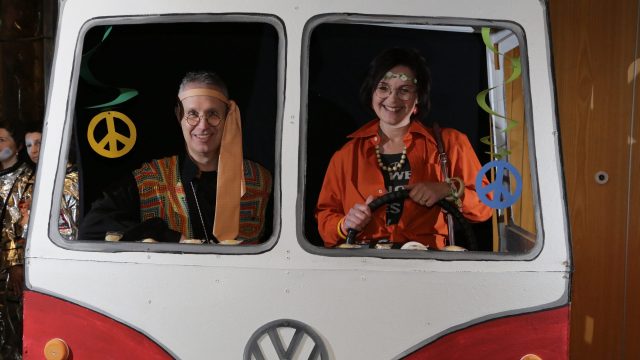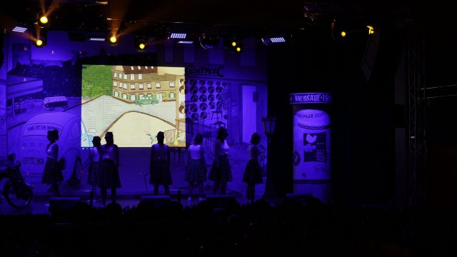 Am Wochenende war es endlich wieder soweit! Nach drei langen Jahren verwandelte die Kreissäge die Jahnhalle wieder in ein buntes Tollhaus. Schon seit Wochen war die Jahnhalle an beiden Abenden ausverkauft! Stilecht, mit 60er Jahre Bulli, wurden die Besucher im Foyer begrüßt. Eine Fotowand zeigte einen Rückblick in die Vergangenheit bis zur ersten Stunde der Kreissäge und die stilvoll geschmückte Halle ließ die Vorfreude noch höher steigen. Und schon ging es los: Sascha Binder, als Peter Prause der Hausmeister der Jahnhalle, wurde durch die Mitwirkenden in seinem Tun gestört, als diese die Bühne zu den Klängen von “La Bamba” stürmten. Das Bühnenbild ließ die Zuschauer in die Fuzo der 60er eintauchen und “Bax” Wagner gab den Sägewalzer zum ersten Mal seit drei Jahren wieder zum Besten. “Rio d`Oro” brachte Woodstock auf den Helfenstein und viel Stimmung in die Halle. Eine super Kreissäge-Premiere hatte die Gruppe Fit & Fun – sie erinnerte mit einer tollen Choreo an die Mondlandung – inklusive Aliens, die es sich nicht nehmen ließen mitzutanzen. “Anton aus dem All” legte humoristisch die Gründe dar, warum eine Gruppe Türkheimer in den sechziger Jahren ins All aufbrach, bevor das Männerballett an den ersten Kaffeevollautomaten der WMF erinnerte, und anschließend den Kaffee natürlich auch stilecht servierte. Und als dann “Bax und Spatzl” ihre ehelichen Diskrepanzen mit Gitarre und tollen Stimmen unter vielen Lachern zum Besten gaben, war den Zuschauern zur Pause schon klar: die Kreissäge rotiert wie eh und je!