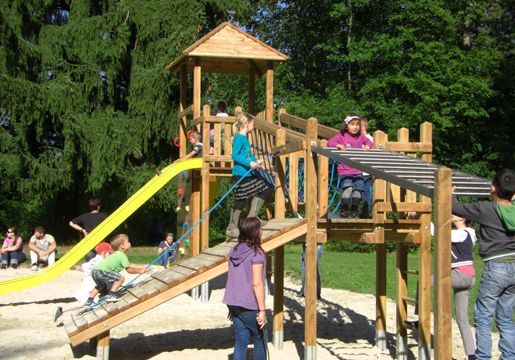 Den kleinen Gästen steht der mit vielen Geräten ausgestattete Spielplatz inmitten einer traumhaften Naturkulisse zur Verfügung.