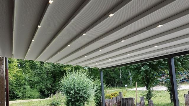 Da die alte Markise auf dem Geiselstein nicht mehr zu reparieren war, wurde im Juni/Juli 2018 eine neue installiert: regendicht, mit Beleuchtung und Fernsteuerung. Sowohl die Gäste als auch die Hüttendienstler freuen sich über diese Innovation.