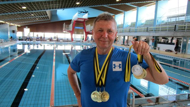 Hans-Joachim Söll (Jg. 1963, AK-55-59) zwei Mal Gold mit den Staffeln 4 x 50 Meter Lagen als Kraul-Schwimmer und 4 x 50 Meter Freistil, und holte zusätzlich über 100 Meter Freistil eine Bronze-Medaille nach Geislingen. Es war eine gute Abwechslung von den Deutschen Langstrecken-Meisterschaften, wo er einen Tag zuvor einen guten 4. Platz in Deutschland über 1500 Meter Freistil erschwamm.