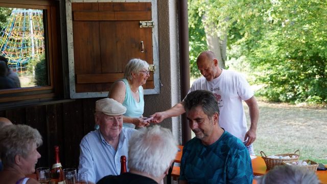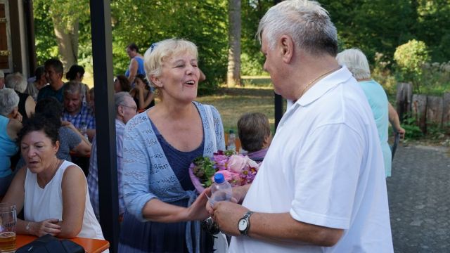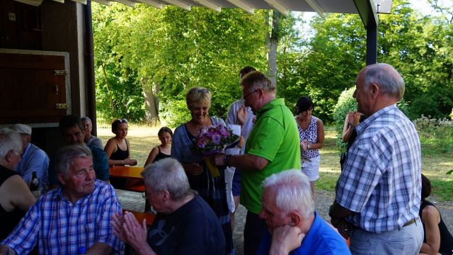 Nach der Siegerehrung wurde die langjährige Übungsleiterin Blanka Baches vom TG-Vorstand Dr. Stephan Schweizer aus dem Übungsleiterteam mit einem kleinen Geschenk verabschiedet. Herzsportler Georg Seybold bedankte sich ebenfalls im Namen aller Herzportler für die langjährigen Übungseinheiten und Ulrich Ludwig überreichte als Dank einen sommerlichen Blumenstrauß.