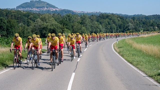 Zum 26. Mal rollte in diesem Jahr die Initiative der Christiane Eichenhofer-Stiftung für kranke Kinder durchs Ländle. Dieses Mal war der Landkreis Göppingen Schauplatz der Radtour. Vom 28. Juni bis 30. Juni 2018 legten die zum Teil sehr prominenten Radfahrer zum Wohl kranker Kinder über 300 Kilometer und fast 2.000 Höhenmeter zurück. Bei den ersten Kontakten zwischen der Stiftung und der Stadt Geislingen war noch von 30 bis 60 Radfahrern die Rede. Beim Jugend-Beachhandballturnier im TG-Stadion waren es schließlich 200 Radler, die von Donzdorf über den Messelberg und Stötten kommend, einen Zwischenstopp einlegten, um anschließend nach Heiningen zum Sommerfest der Lebenshilfe weiterzurollen. Dort wurde dann das vorläufige Spendenergebnis bekanntgegeben; die Aktion selber läuft noch bis Ende 2018 zugunsten der Lebenshilfe Göppingen.