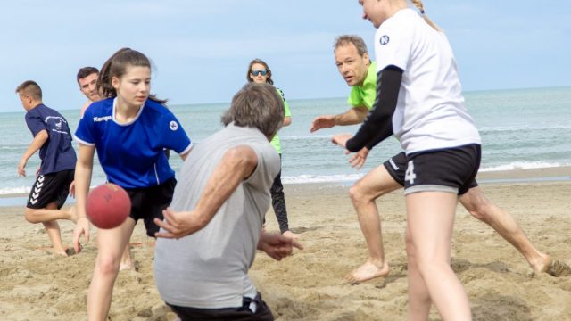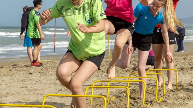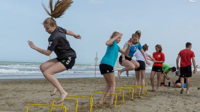 Bei teilweise sonnigem Wetter und angenehmen Temperaturen konnten sich die Sportler dort ideal auf die kommende Saison vorbereiten. Drei Trainingseinheiten verteilten sich über den Tag: früh morgens war ein leichtes Jogging am Strand angesagt, dann, nach dem Frühstück, ging es zum nahe gelegenen Stadion und nachmittags trainierten die Jungen und Mädchen dann am feinen Sandstrand von Riccione , wo die Handballer sich auch intensiv auf die kommende Beach-Handball Saison vorbereiteten.