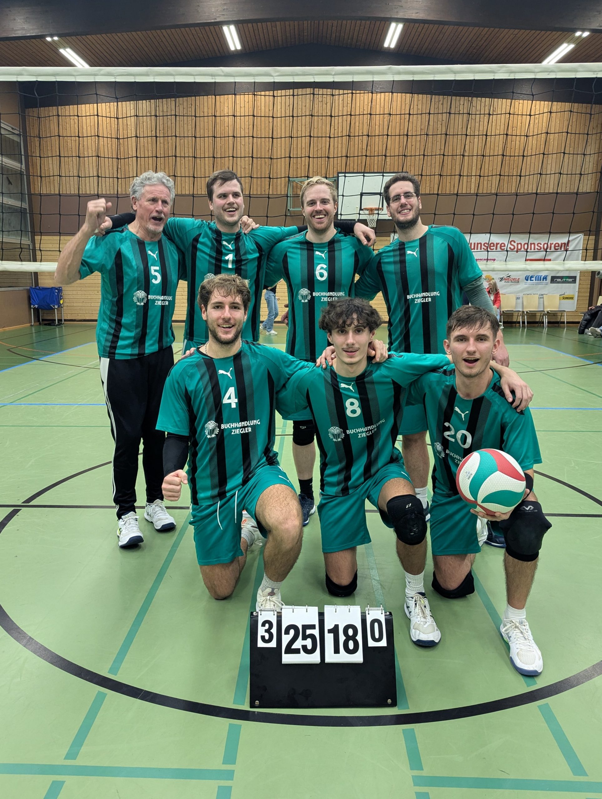 Sie hatten einen unerwarteten 3:0-Sieg erzielt und dennoch kam bei den Geislinger Gästen keine große Stimmung auf. Denn in der vorausgegangenen Begegnung zwischen dem SC Göggingen und der SG VolleyAlb/Brenz verletzte sich der zentrale Spieler der Heimmannschaft ohne gegnerische Einwirkung so schwer, dass diese Begegnung minutenlang unterbrochen werden musste. Das 3:1 der Gäste von der Ostalb reduzierte sich dadurch zur reinen Formsache. Damit stand aber auch die folgende Partie der TG Geislingen gegen den SC Göggingen unter völlig veränderten Vorzeichen, mussten jetzt die Gastgeber doch ihr starkes, homogenes Team umstellen und den Schockmoment aus den Köpfen bekommen. Die TG brachte nach zwischenzeitlicher 18:11-Führung den ersten Satz aufgrund einer soliden Leistung unbedrängt mit 25:19 zu Ende. Der zweite Durchgang war vor sehr engagiertem Heimpublikum eine wesentlich wackligere Angelegenheit für die Grünschwarzen. Trotz zehn katastrophal vermasselter Aufschläge setzten sie sich letztlich mit 25:23 äußerst knapp im Endspurt durch. Garant in dieser Phase war wie schon oft Hauptangreifer Magnus Boni, dessen Bälle ein ums andere Mal unerreichbar auf gegnerischem Parkett einschlugen. Mit der 2:0-Satzführung im Rücken ließ sich die TG die Butter nun nicht mehr vom Brot nehmen und sicherte sich mit einem 25:18 und damit 3:0 den dritten Auswärtssieg in Folge. Das über Erwarten erfolgreiche Team fiebert jetzt als Tabellendritter den beiden Heimspielen am 21.12. entgegen, an dem der SSV Ulm 1846 und die SG VfB FN 4/TSV Fischbach/TSG Ailingen zu Gast sein werden.