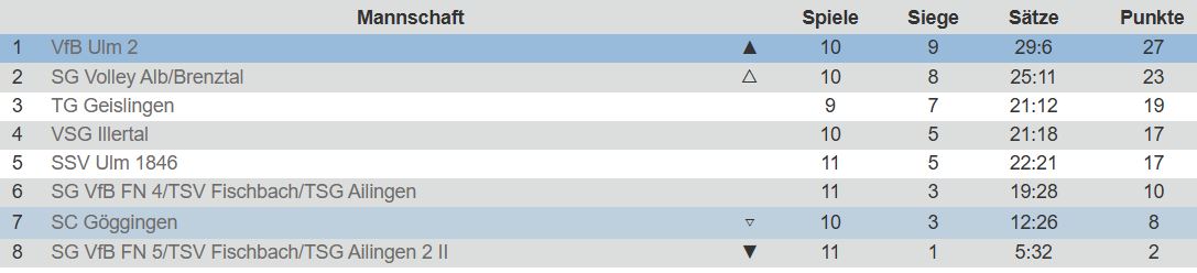 TG Geislingen – SG VfB FN 5/TSV Fischbach/TSG Ailingen 2 3:0 (25:12, 25:16, 25:22)
